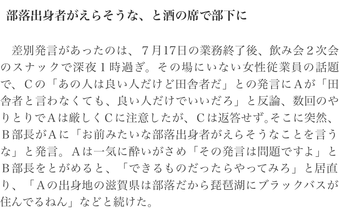 | … | 4026/01/15(木)13:04:21No.1392654401そうだねx1まずCの田舎者発言からしてヤベェし乱入したB部長が更にギアを上げる |