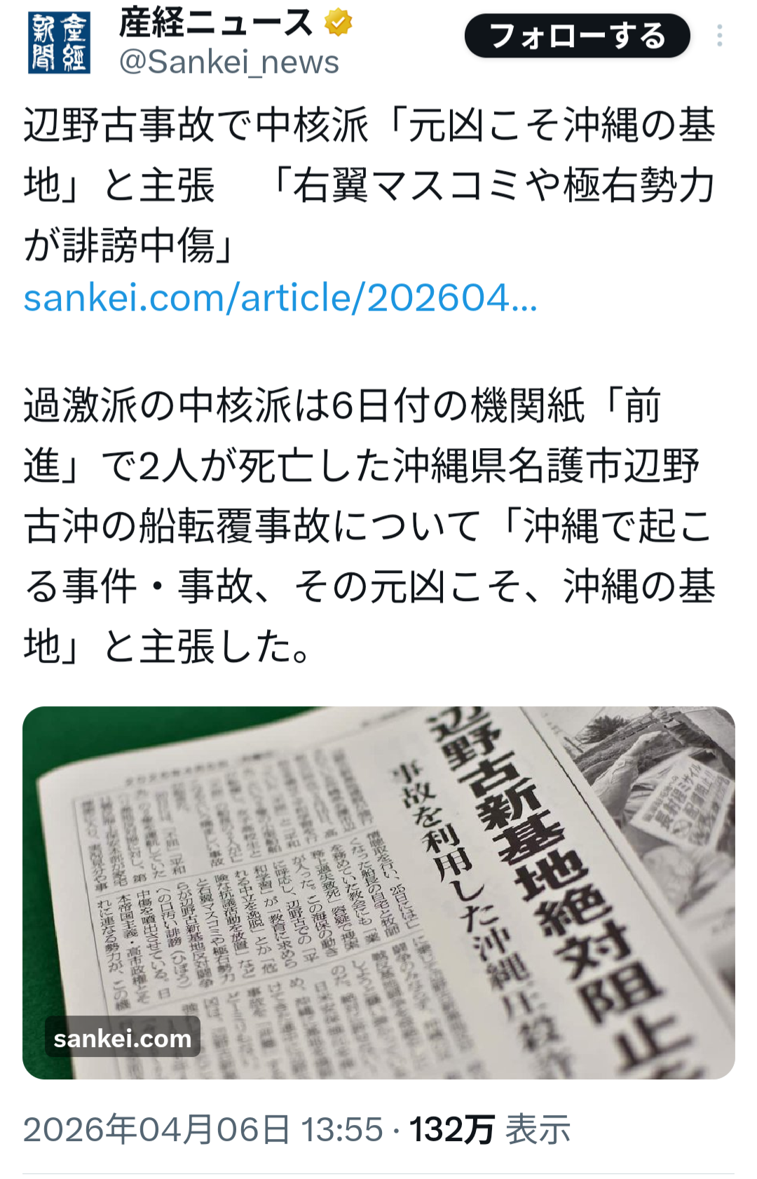 | … | 1726/04/07(火)04:24:19 ID:aFHmkTgwNo.1418017699+>ネトウヨが記事書いてる産経なんて読むなよ |