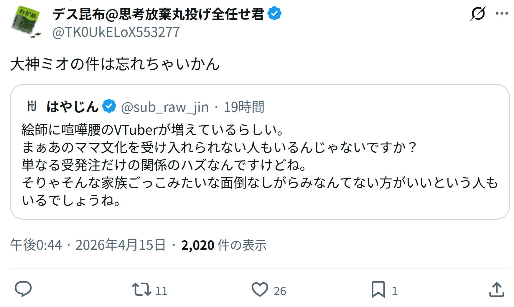 | … | 1826/04/17(金)06:24:06No.1421063815+https://x.com/i/status/2044540533234913529 |