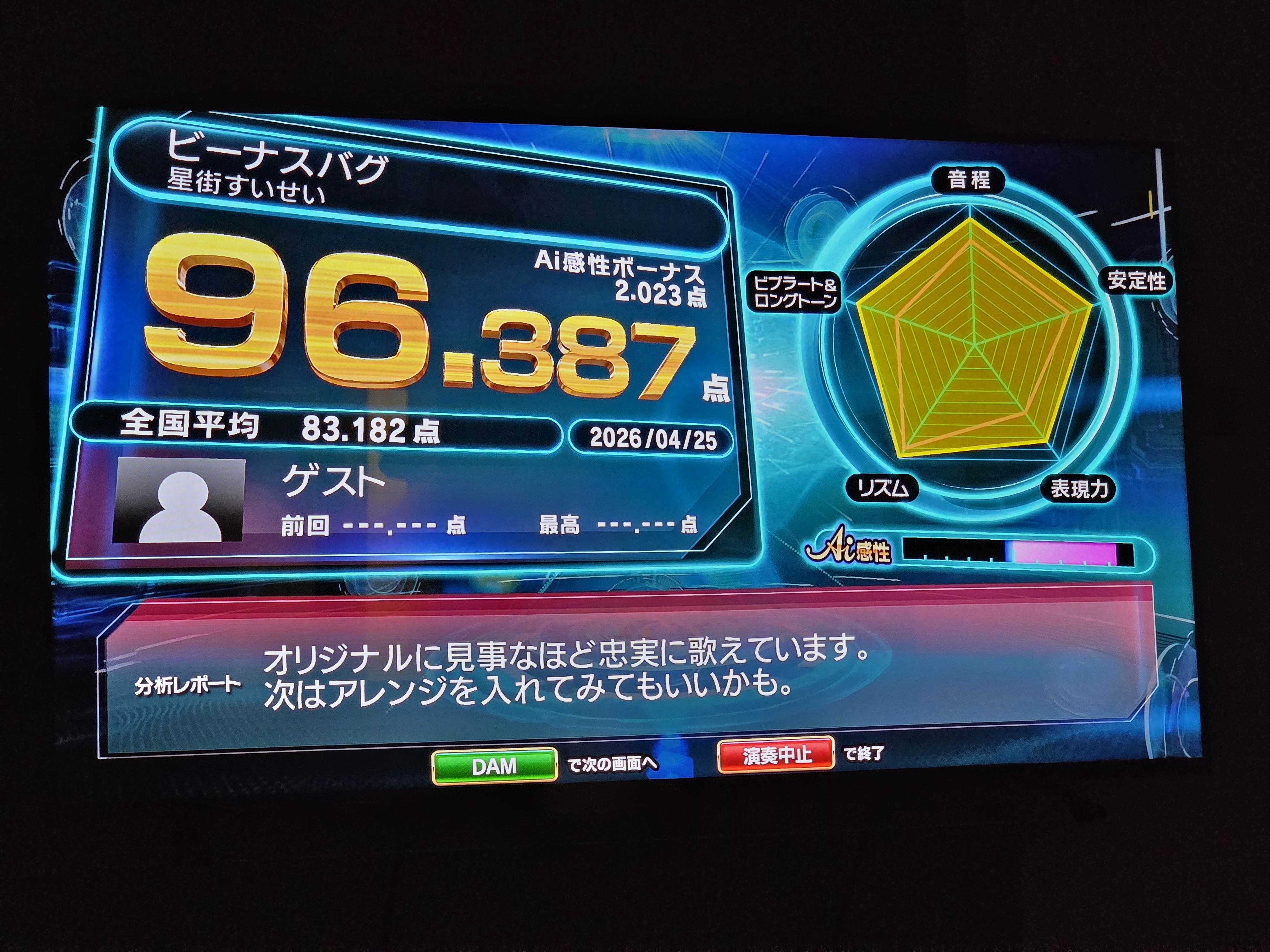 でも自分の歌ってる時の感覚と得点って別に比例してこないから運なのか…?みたいになってる