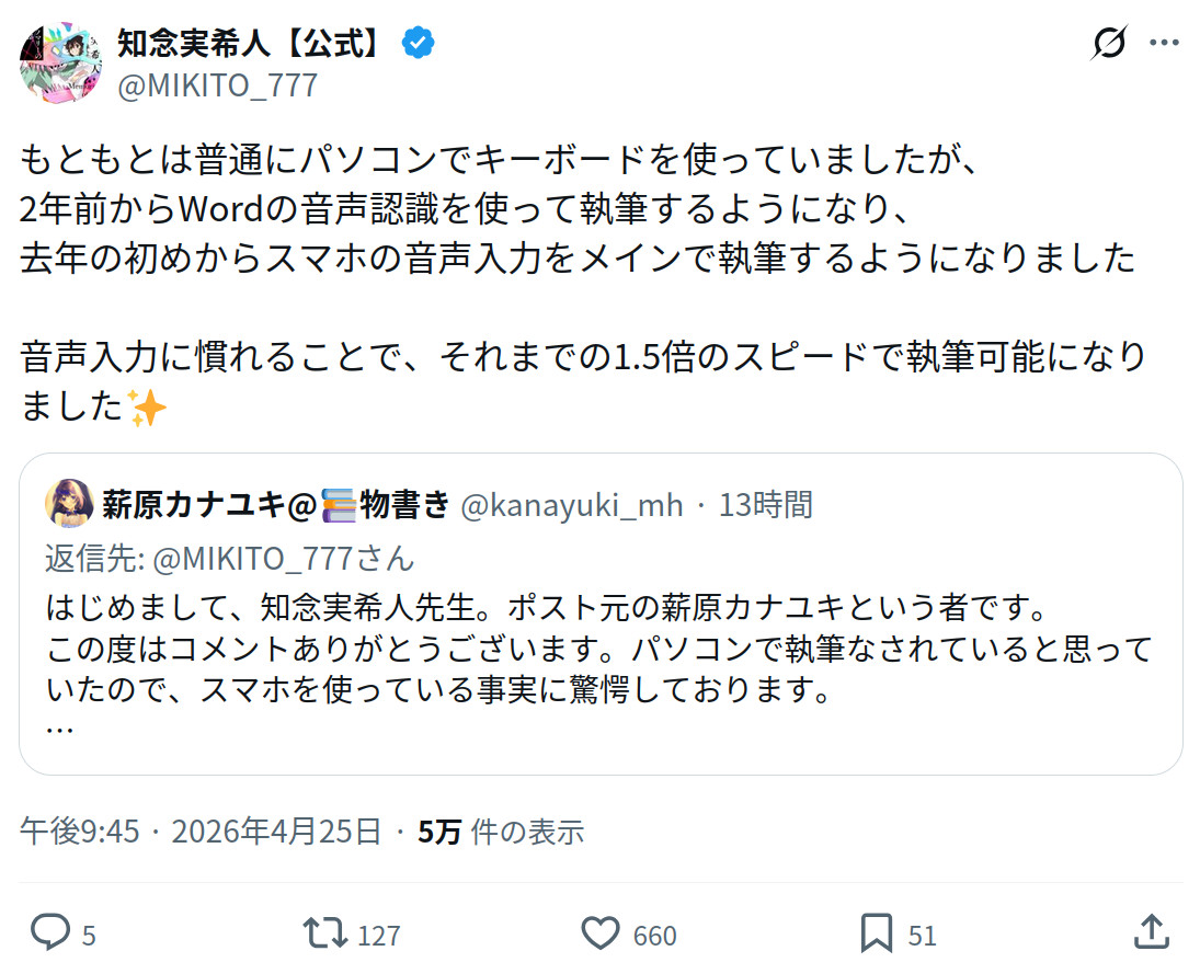 | … | 1026/04/26(日)11:32:19No.1423956350+音声入力は便利なんだろうけど |