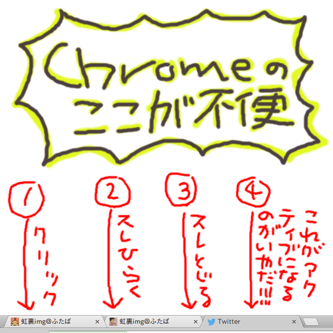Chromeでタブを閉じたとき、直前にアクティブだったタブに戻してくれればいいのだけどそうなってくれないので、アクティブ化した順序を覚えておいてタブを閉じたらそれを遡ってくれる拡張を公開してたんだけど最近のChrome上でうまく動かなくなったので更新しました