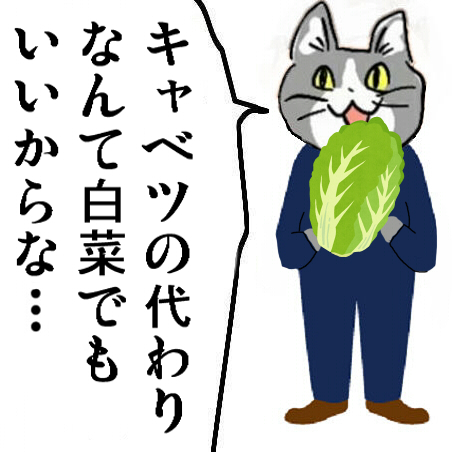 | … | 4825/12/26(金)21:03:06No.1386428640そうだねx4キャベツは白菜の代わりになるけど白菜はキャベツの代わりにはならない気がする |