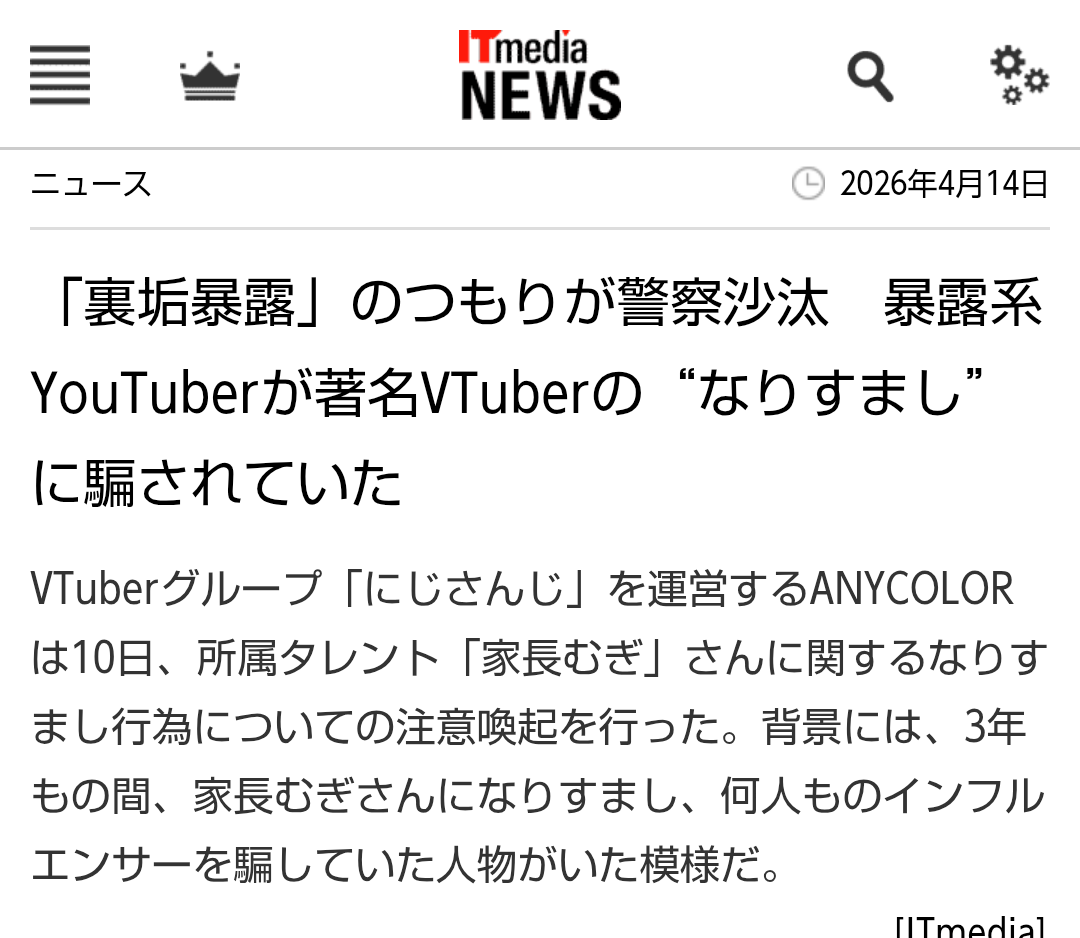 | … | 226/04/14(火)19:29:40No.1420353419そうだねx5裏垢なのに自分から私このVtuberなんです〜って言い出してる時点でおかしいと思わんかったのか? |