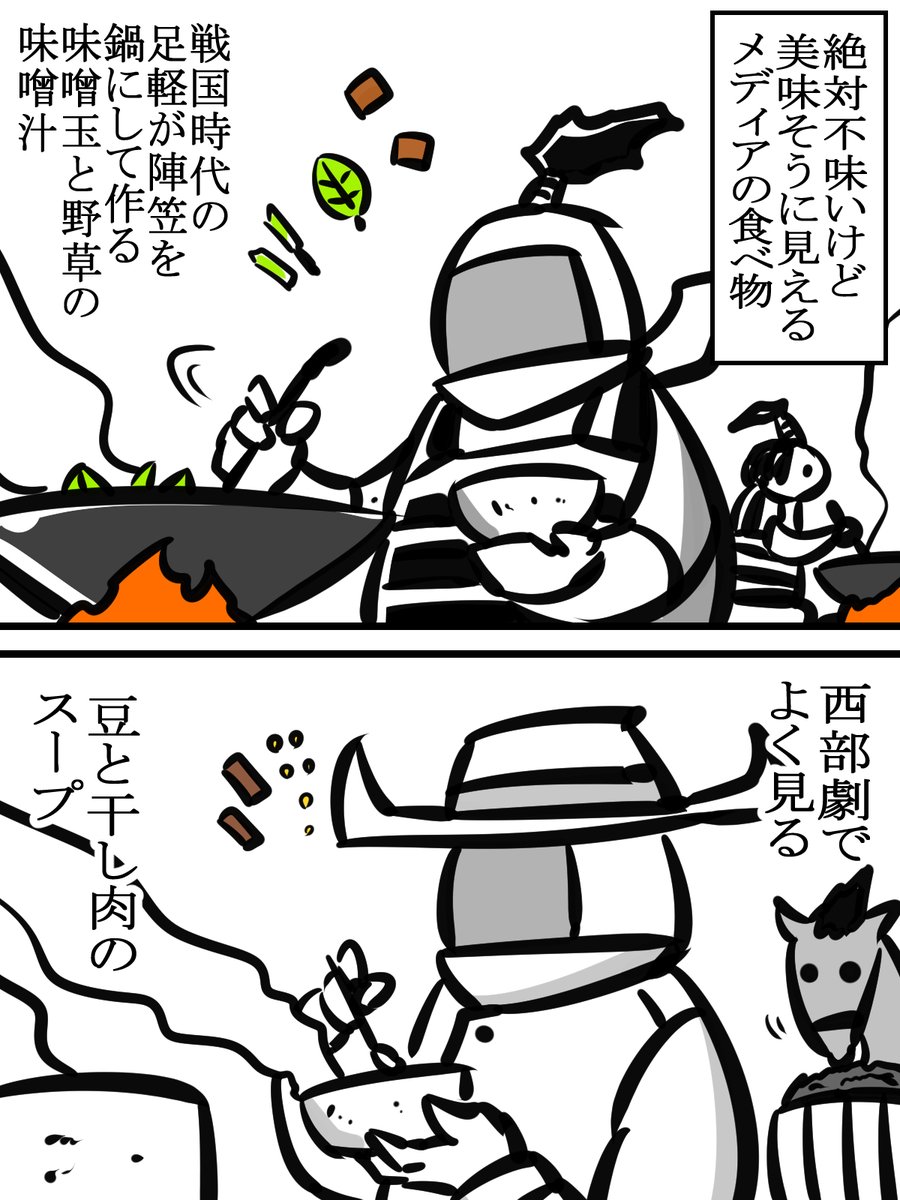 | … | 1226/04/14(火)19:49:15No.1420360696+陣笠鍋は戦国時代までの陣笠は革か紙でできてたからジッサイはできなかったそうだな |