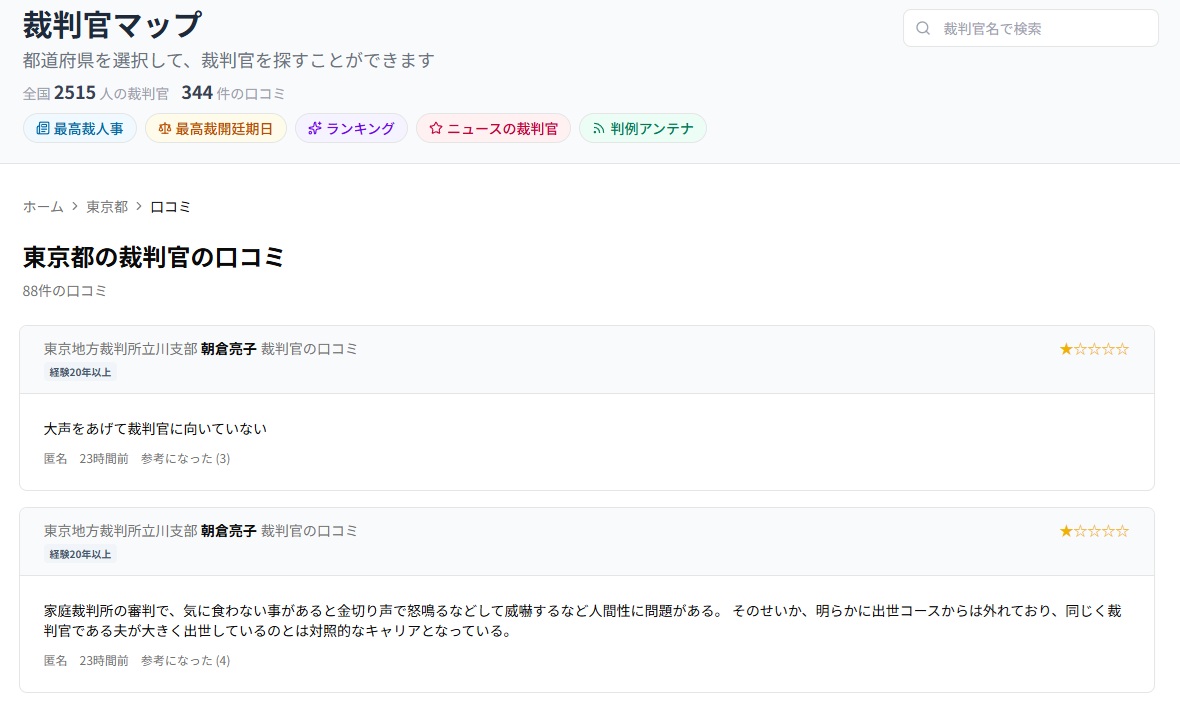 裁判官レビューサイトをみているとレス59件省略。全て読むには返信ボタンを押してください。