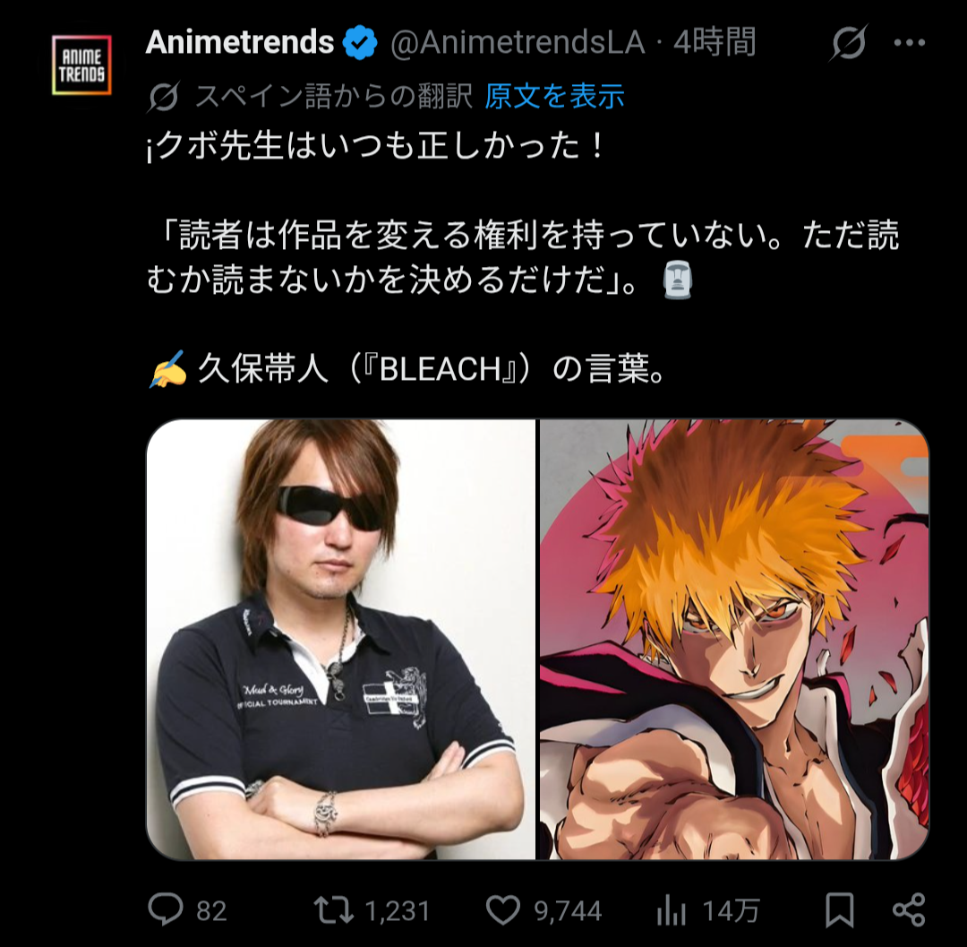 | … | 1326/04/13(月)17:55:36No.1420027919+漫画家の久保帯人にそっくりよね。 |