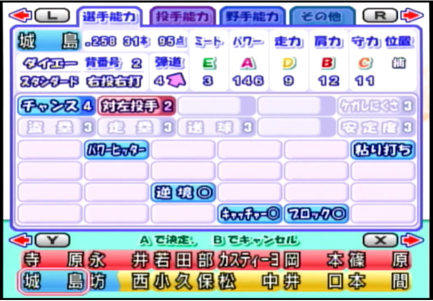 キャッチャーはパワーAかBぐらいはある