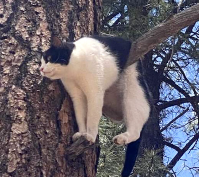 「猫はポンデローサ松の4.5mほどの高さのところにいました」と国立公園の広報室のジョーさんが言いました。後に『アーチー』という名前だと分かった猫は、木の枝に体を掛けた状態で固まっていて、自力で降りることができなくなっていました。