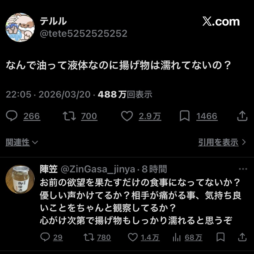 | … | 526/03/22(日)04:24:39No.1413049420+脂っこくはないという意味ではさっぱりではある |