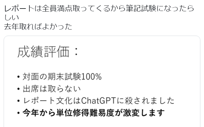 | … | 526/04/16(木)02:51:57No.1420780876+AIレポート書くにしてもAIの間違えを修正する能力で差が出るから全員満点になんてなるもんだろうか |