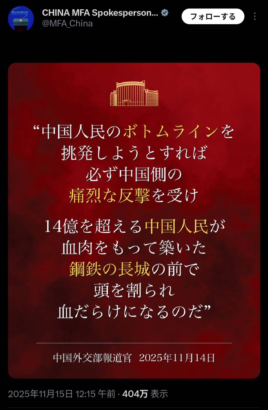 | … | 7025/11/15(土)12:45:36No.1372784968+>外交部遊ばれすぎだろ |