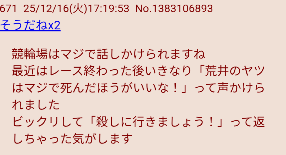 | … | 2626/03/16(月)05:10:28 ID:DTTldvJsNo.1411211823+勝てない!から勝てる状況にする!はカタルシスがあるぞ!! |