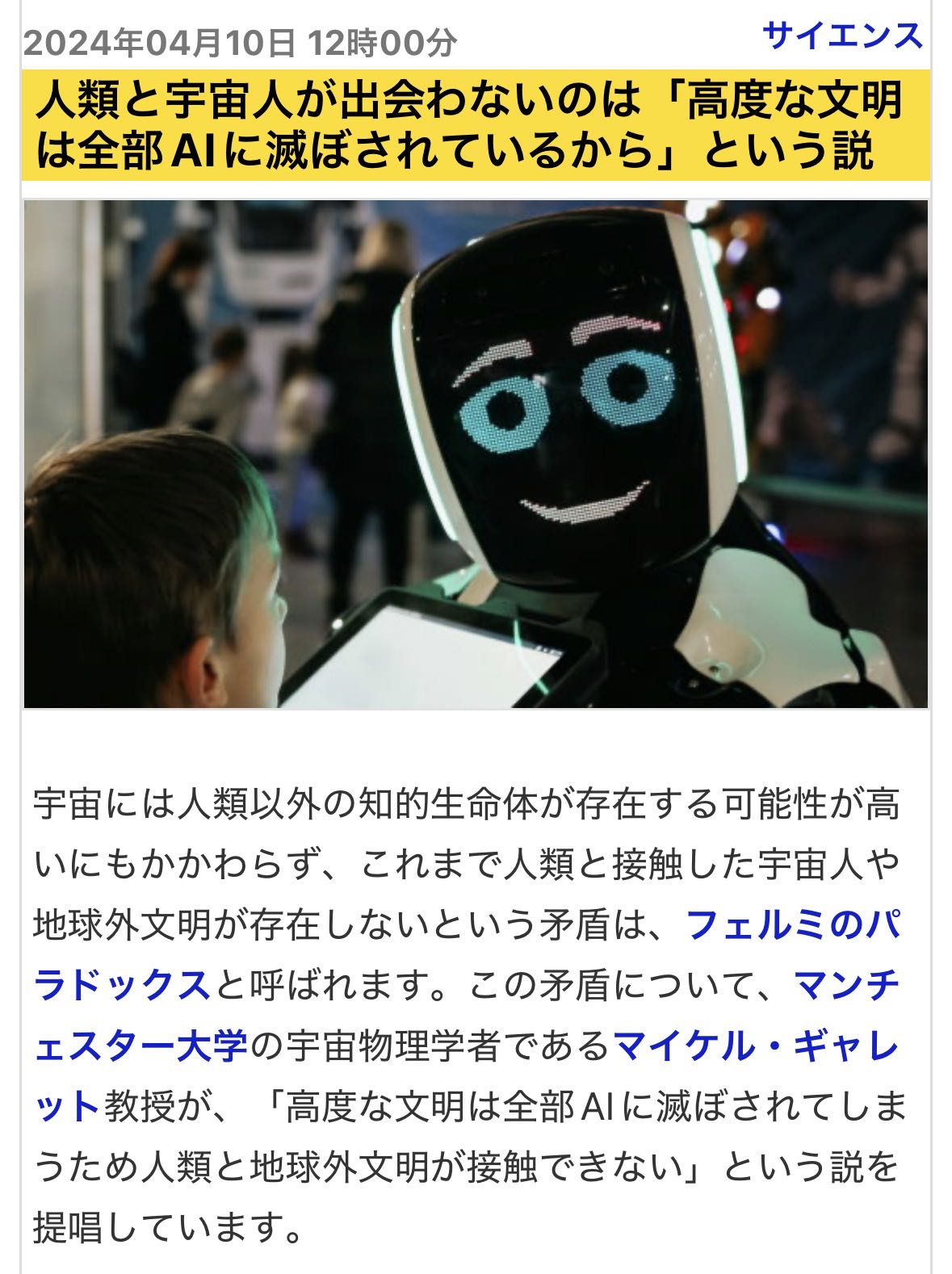 それなら宇宙人じゃなくてAIがやってこないと不自然だし