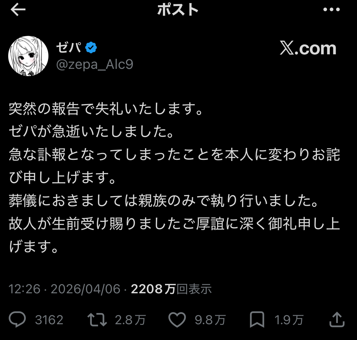 【速報】ゼパ急逝レス41件省略。全て読むには返信ボタンを押してください。