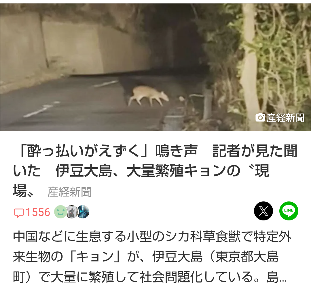 | … | 3025/11/09(日)08:54:07No.1370871058+>大島のキョンの捕獲の仕事してたよ俺 |