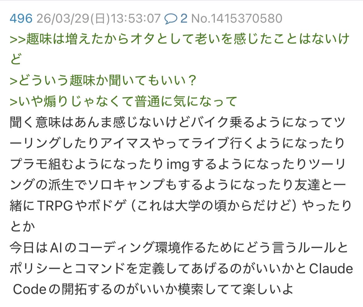 | … | 1226/03/29(日)14:39:50No.1415384176+ちゃんとしてる人間がオタクな訳ねえだろ |