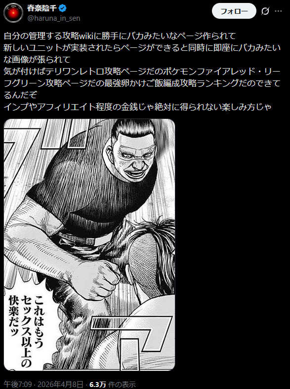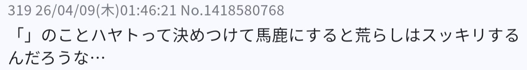 | … | 4026/04/08(水)11:30:55No.1418340389+>理屈も道理も知らんガキの恨みは怖えからしょうがない |