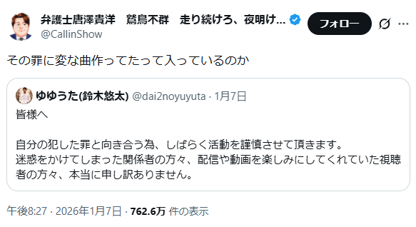 | … | 126/01/12(月)14:25:42No.1391805254そうだねx1帰らなかったことだけで罪になっている… |