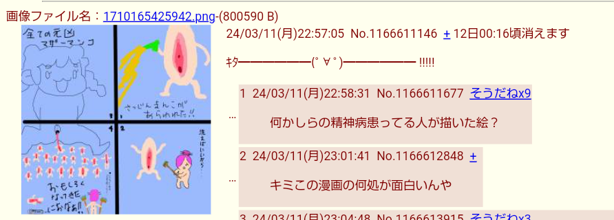 | … | 8426/04/19(日)13:27:12No.1421807172そうだねx1>マン○で〇んこするな! |