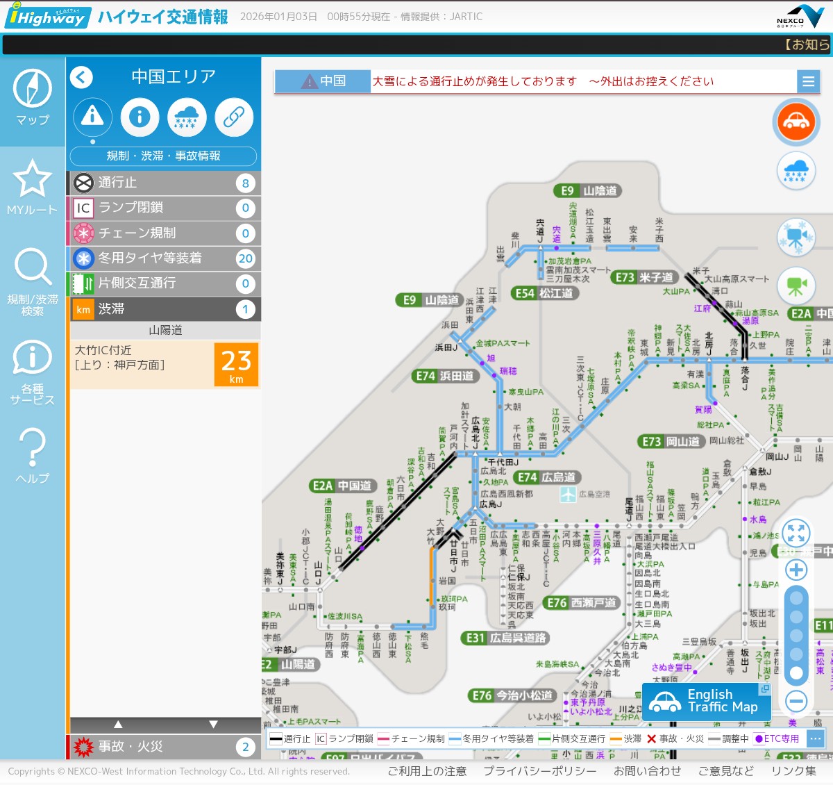 | … | 3526/01/03(土)05:01:59No.1388995047+そろそろ解消したかな?と思って見てみたら通行止めが拡がってて駄目だった |