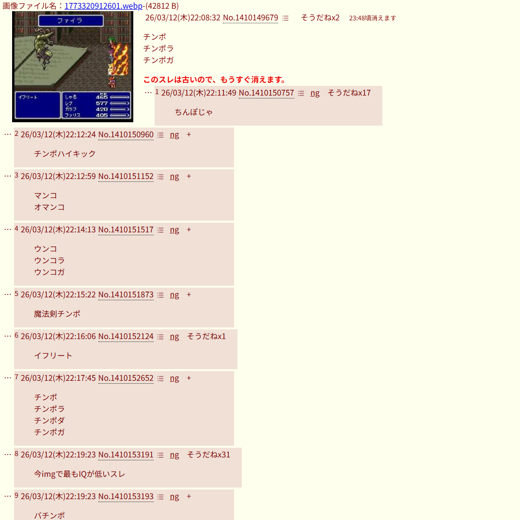 | … | 3026/03/14(土)03:14:47No.1410504888+ありがとう見知らぬホモの人… |