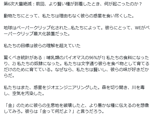 | … | 826/04/23(木)07:07:43No.1422963555+人間に地球環境を守る責任なんてない |