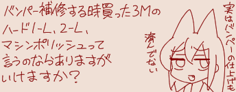 | … | 5025/10/27(月)02:54:48No.1366736698そうだねx2 1761501288171.png-(37163 B) >ライト磨きは3Mの液剤のやつがいいぞ |
