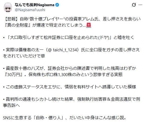 確かに資産何十億もある人がちまちま動画を作って情報商材で小銭集めてるのは不自然だなってちょっと思ったことはあります