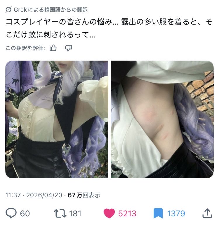 | … | 1126/04/21(火)09:31:52No.1422392628+かんこくはもう蚊が出てるのか… |