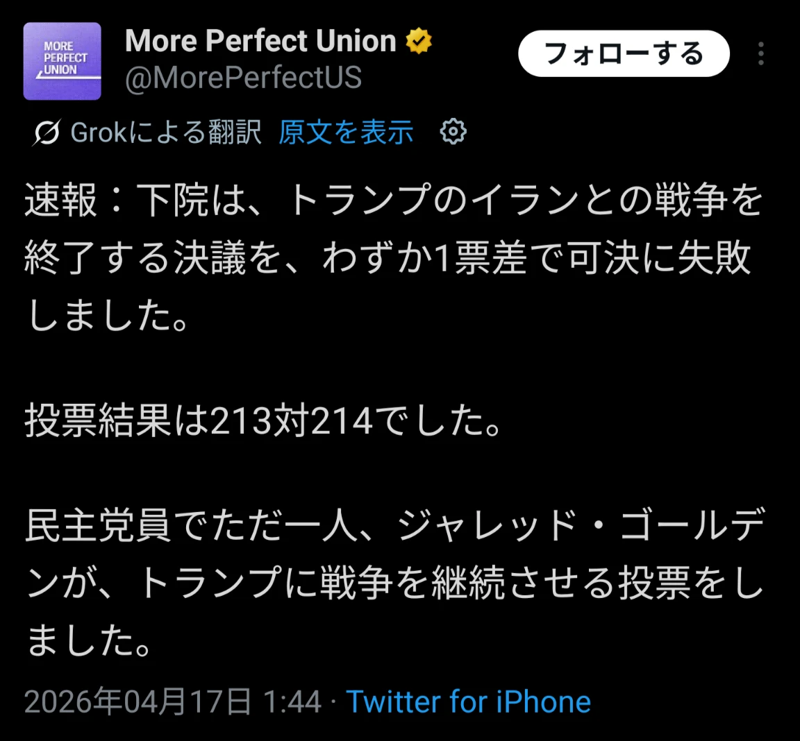 | … | 1826/04/17(金)03:51:37No.1421059249そうだねx1>調べりゃ分かるけどこいつ民主党のガワ被った共和党議員だからな |