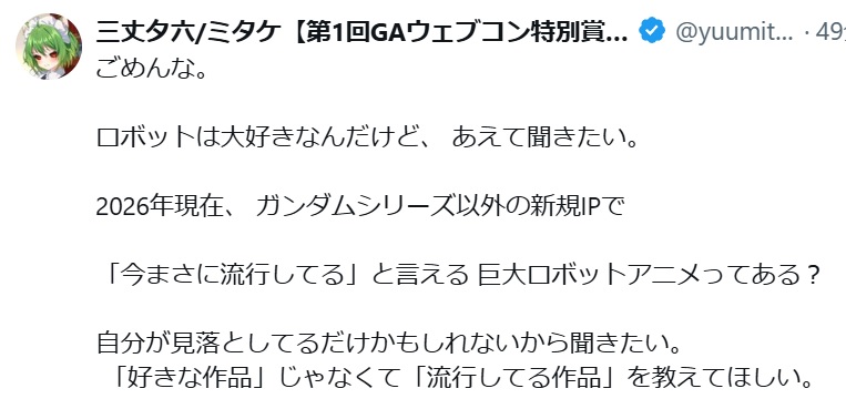| … | 2626/04/22(水)15:43:30No.1422767302+重要なことは二回重ねて言うのだ |