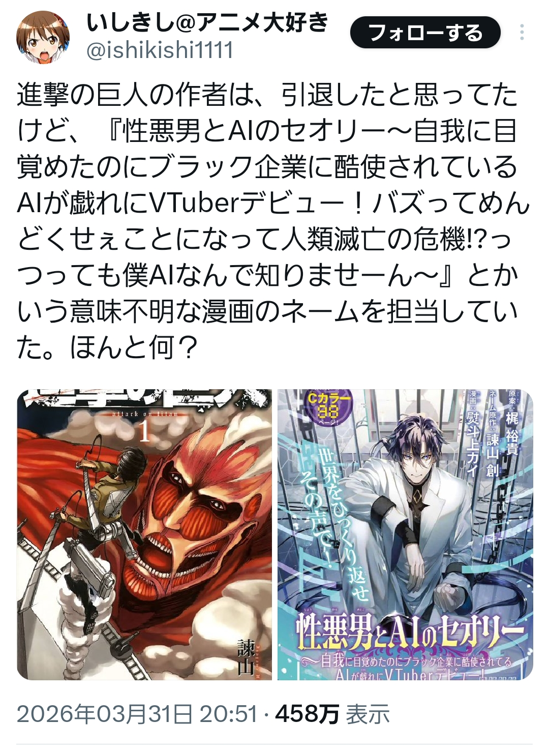 | … | 1026/04/01(水)16:33:33No.1416350535+シャア!シャア!シャア! |