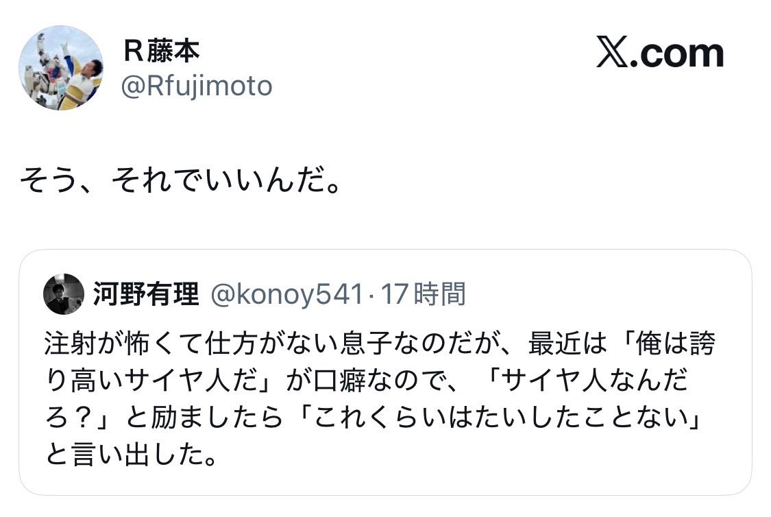 | … | 6426/04/07(火)12:14:57No.1418069050+>Z戦士で注射平気そうなのクリリンと悟飯くらいじゃないか |