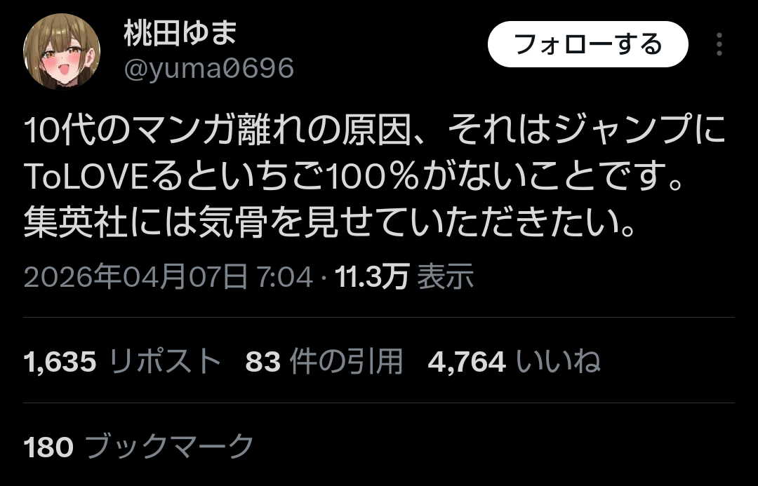 | … | 326/04/07(火)12:20:58No.1418070621そうだねx1漫画離れって物理電子とかの話じゃなく漫画そのものを読めなくなってんのよ |