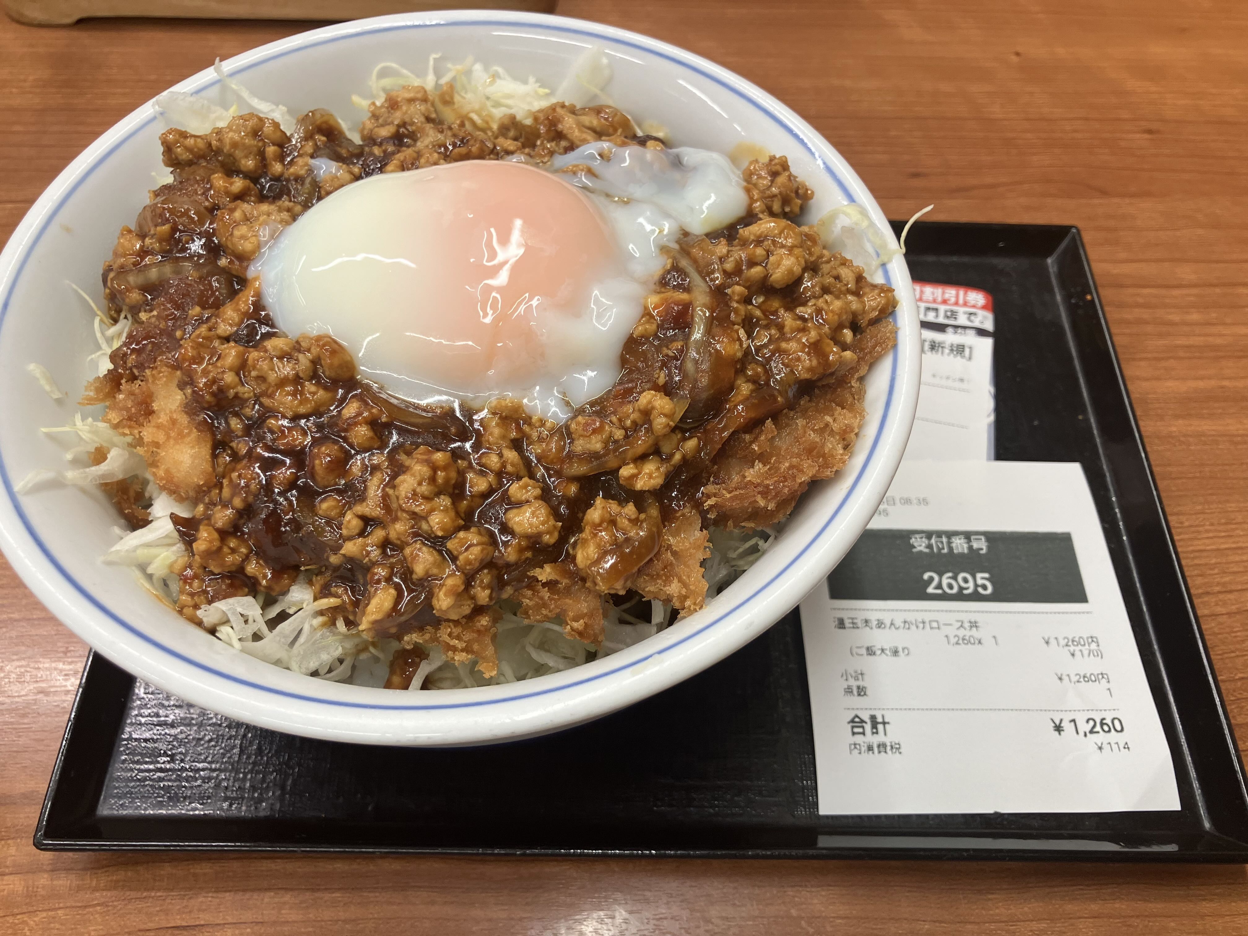 これはロースカツにひき肉のあんかけがかかったやつ