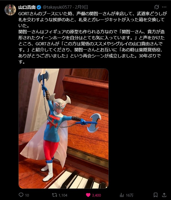 | … | 426/02/14(土)16:33:24No.1401921757そうだねx3関智一さん、あなたが造形されたクイーンホークを自分はとても気に入っています。 |