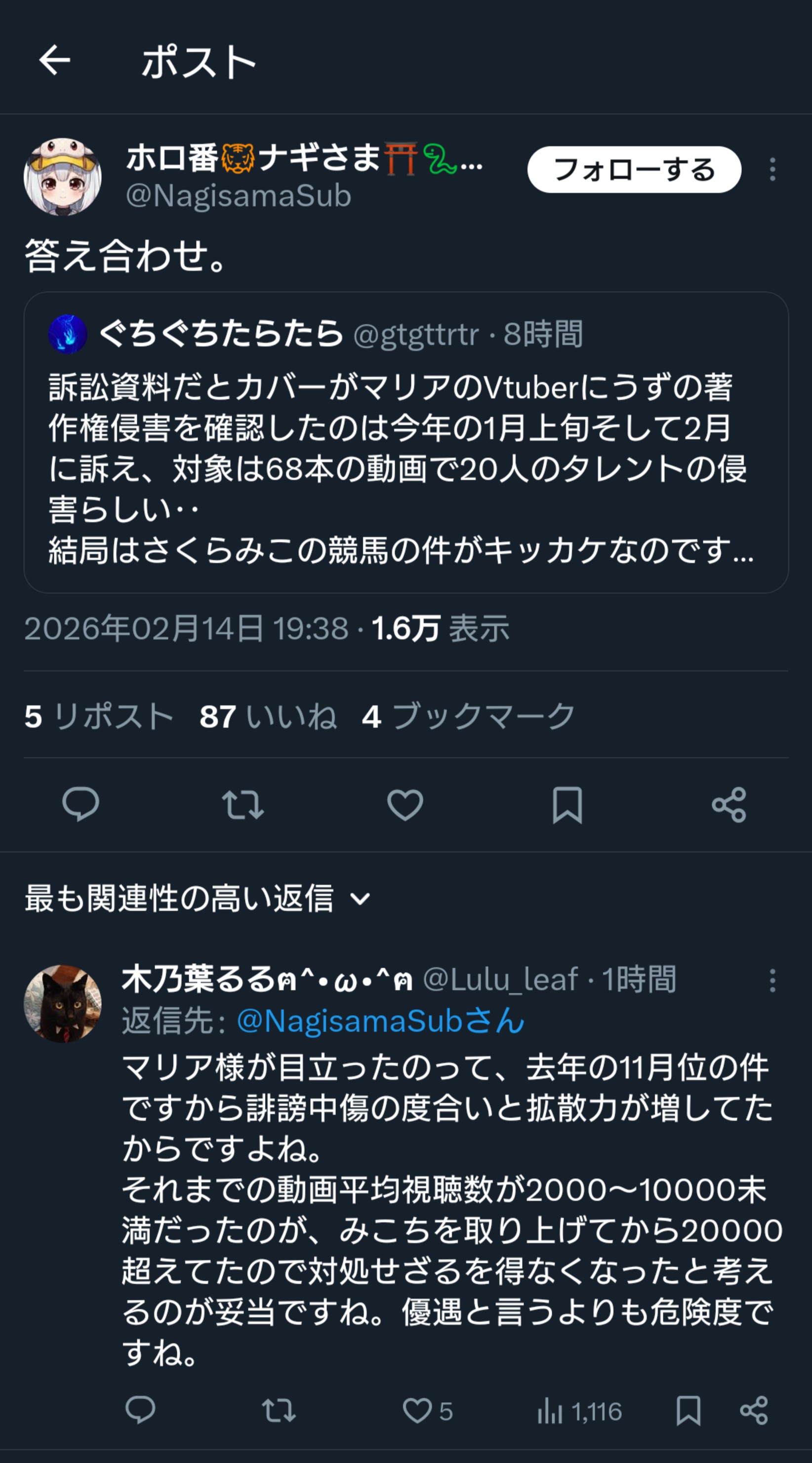 | … | 526/02/14(土)16:39:41No.1401923415+>((((まだ俺以外にバレてない)))) |