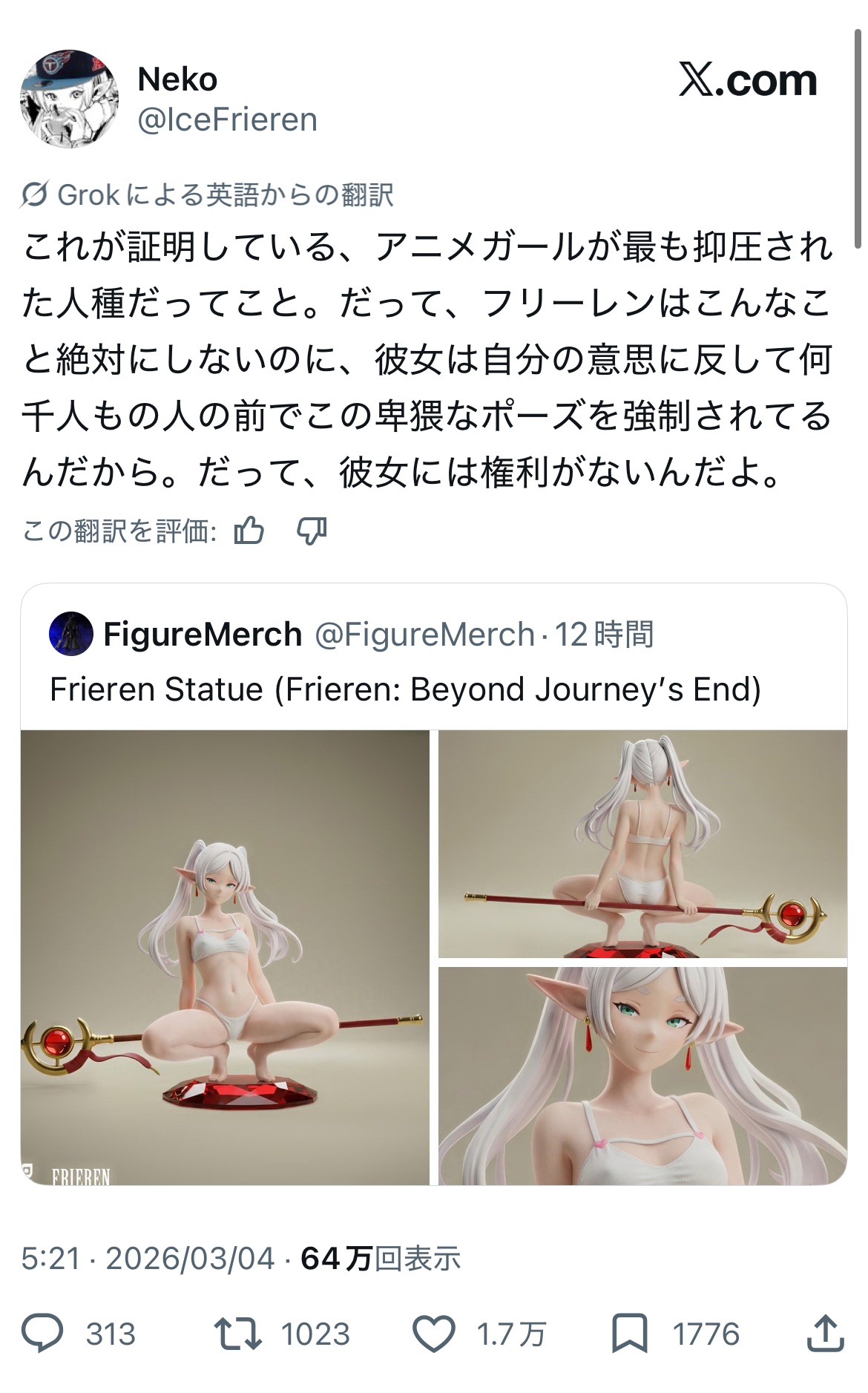 | … | 1726/03/04(水)15:55:02No.1407625843+自分の中で育て上げて現実と乖離したフリーレン像を勝手に押し付けてくるな |