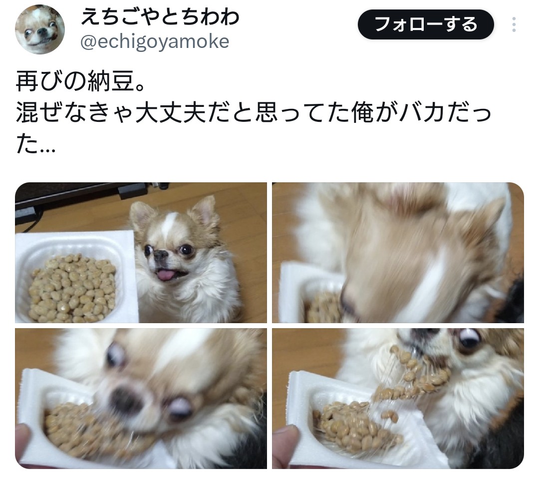 | … | 326/04/14(火)22:47:08No.1420429393+犬って納豆好きなの?個体差ありそうだとは思うけど |