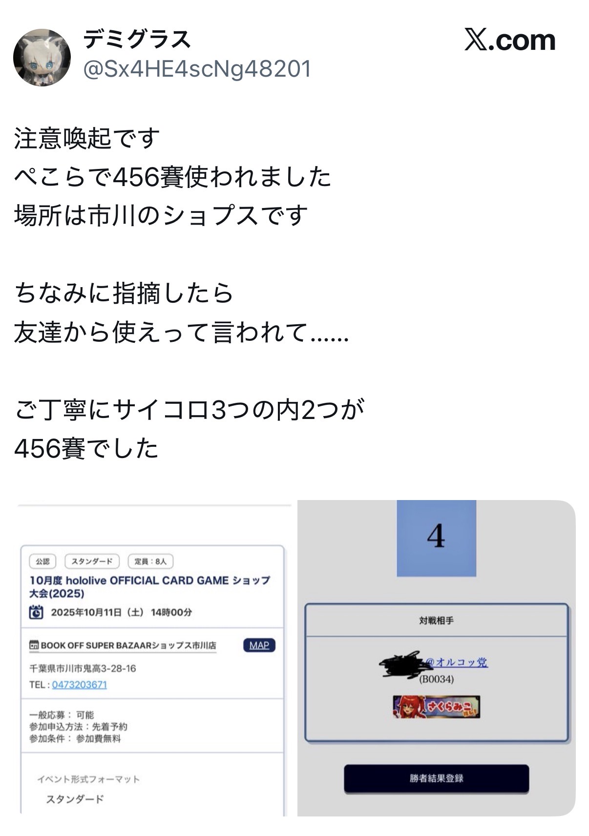 … | 6525/10/13(月)04:42:18No.1362345392+これで面白かったのは優勝したのが全く無関係の別の人でその人はこの人の告発を見て初めて自分もイカサマされてたっぽいと知ったこと |