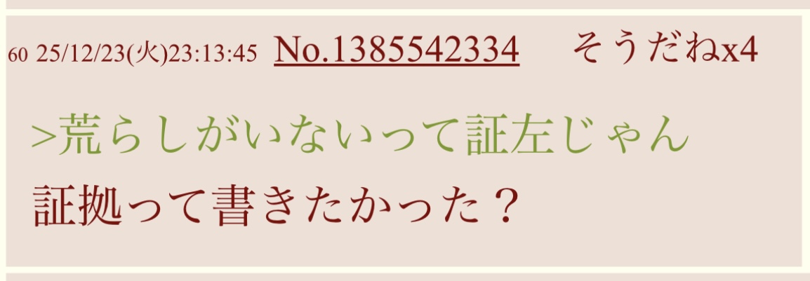 | … | 2025/12/24(水)12:31:24No.1385659004+煽りなんて行動自体自分は賢いと思ってるバカのする事だし… |