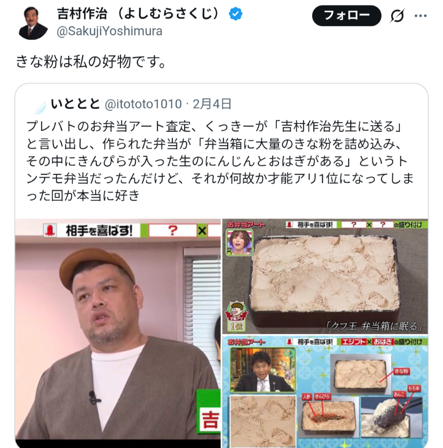 | … | 1426/02/07(土)20:12:35No.1399725300そうだねx1常人ならきなことおはぎだけで終わってたよね |