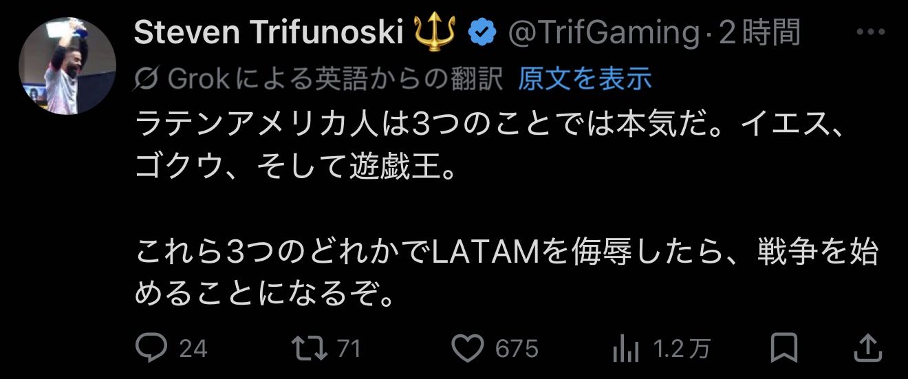 | … | 426/04/08(水)04:10:03No.1418294391+この3つの要素でラテンアメリカを侮辱って具体的にはどうやるんだ? |
