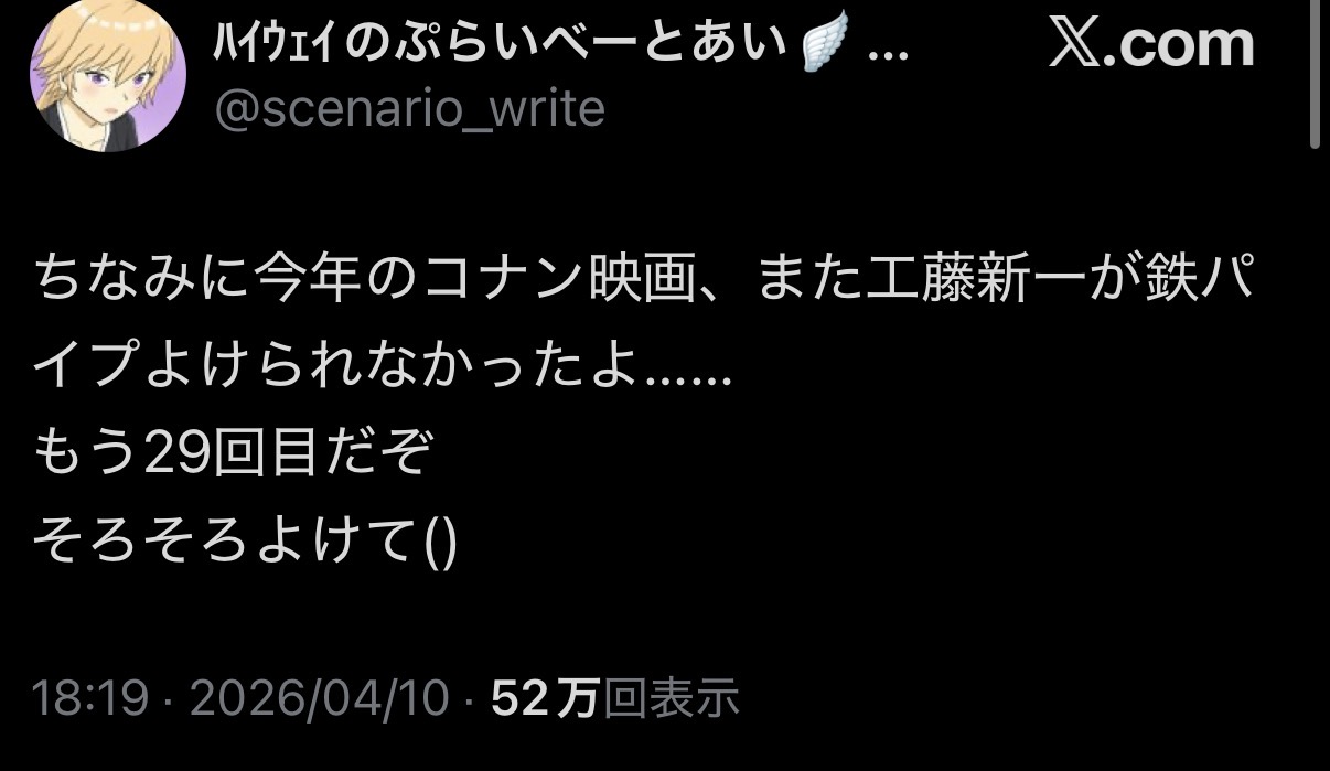 | … | 326/04/11(土)09:36:52No.1419207034+これ新一のままでもあんまストーリー変わらなくない? |