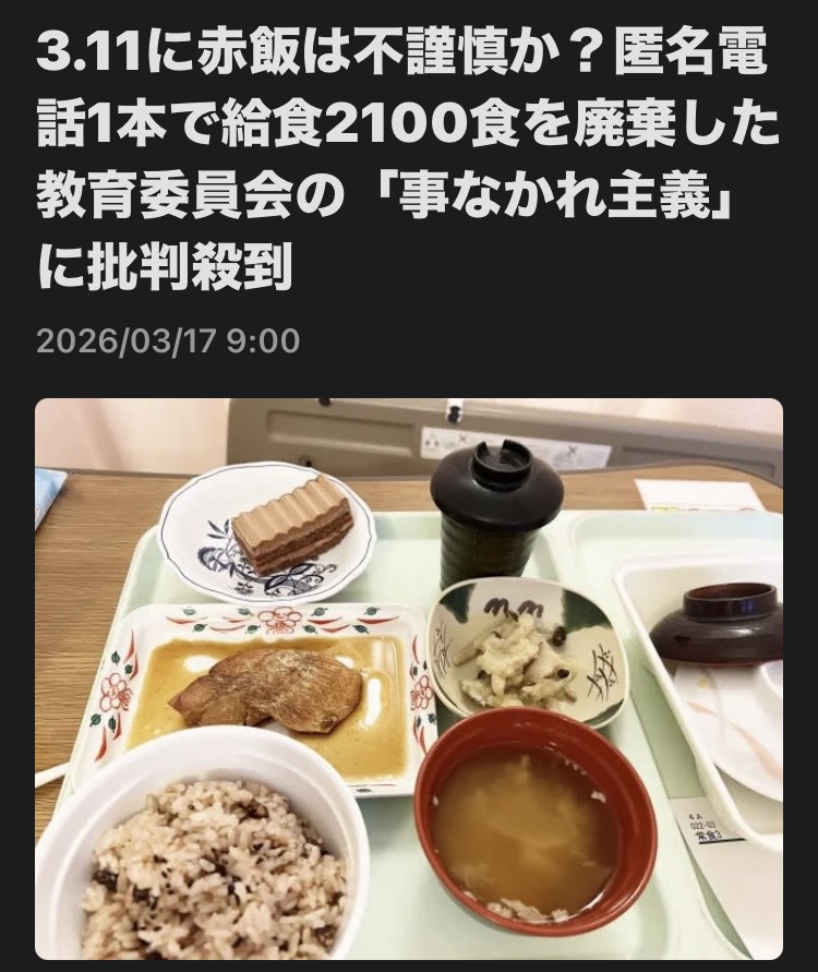 東日本大震災から歳月が流れる中で、被災地・福島県いわき市で起きた給食廃棄問題が、ネット上で激しい論争を巻き起こしています。卒業を控えた中学3年生を祝うために用意された「お祝い献立」の赤飯2100食が、提供当日の午前中にすべて廃棄されるという、前代未聞の事態が発生したのです。
