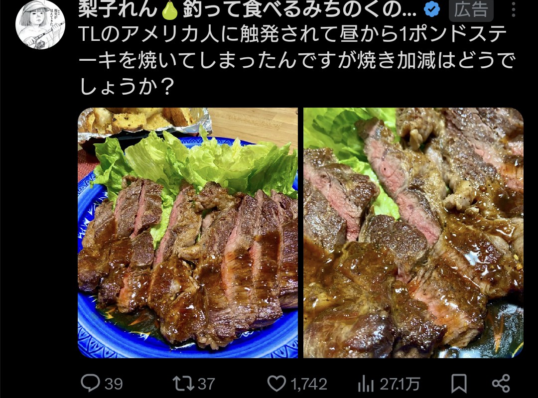 | … | 126/04/19(日)20:07:29No.1421937600+1ポンドには見えないな…せいぜい200g強の厚さ |
