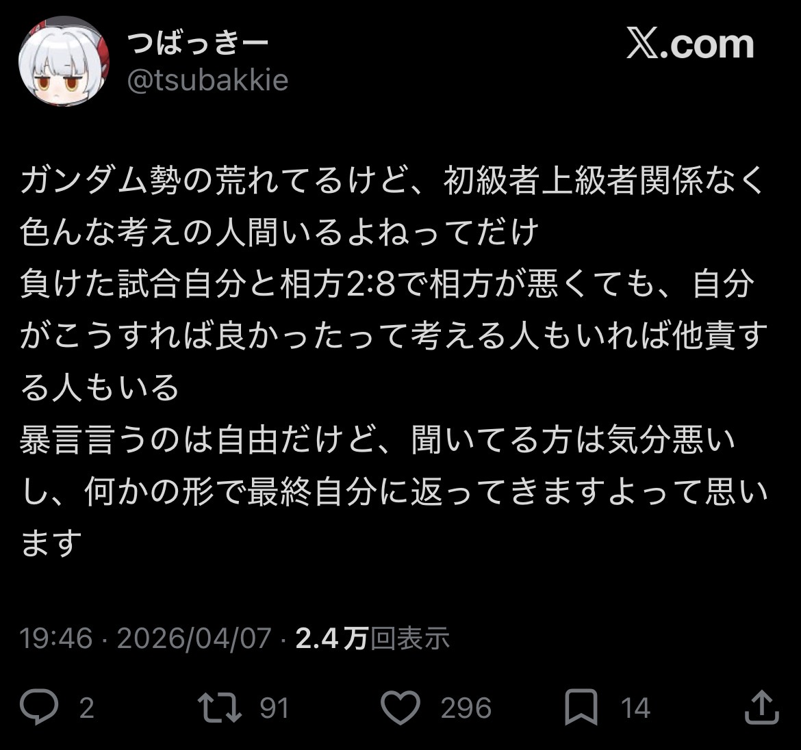 | … | 2826/04/08(水)09:26:33No.1418317275そうだねx1元来ニュータイプというのは効率良く殺戮するための存在ではないのであり |