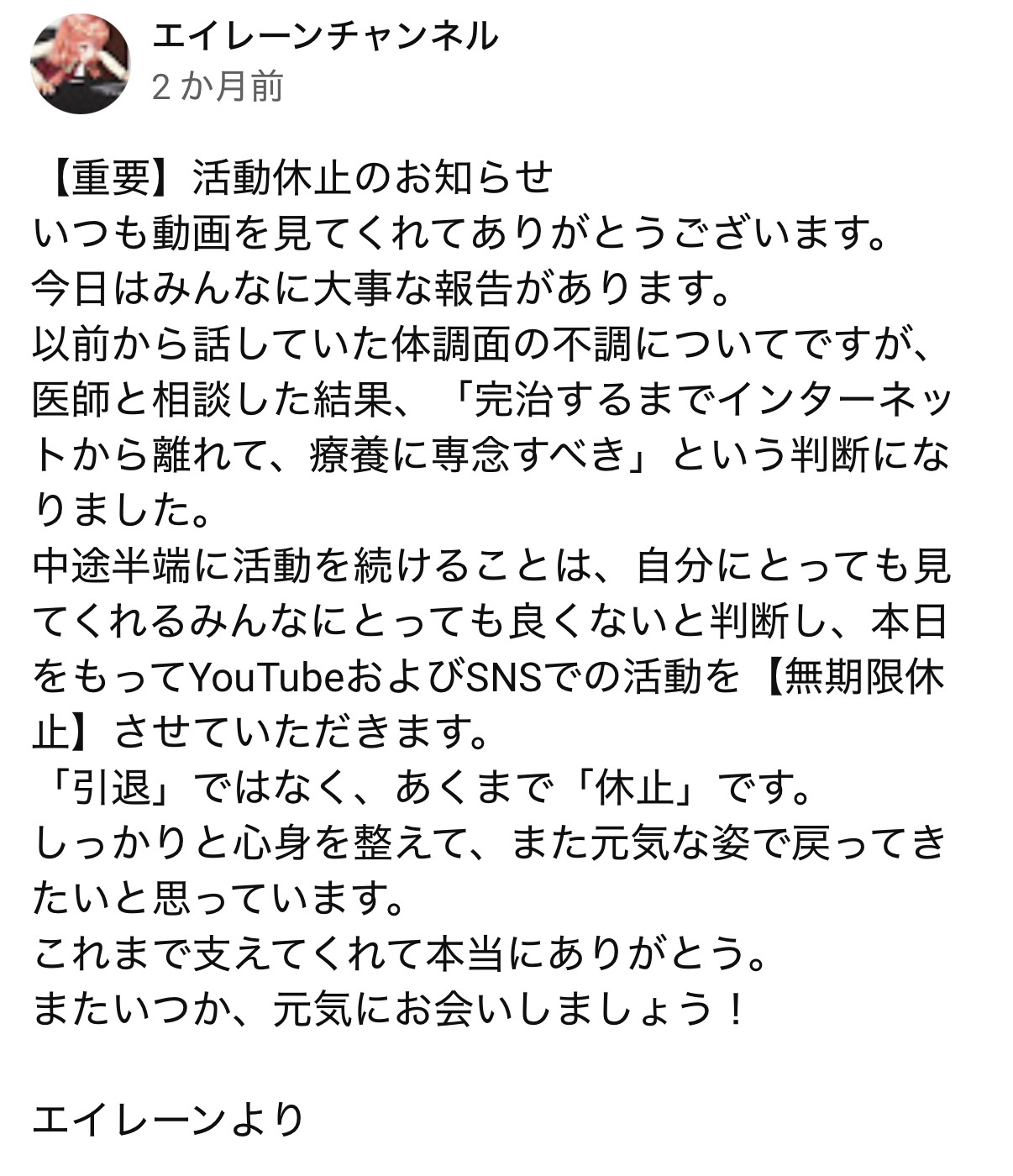 また活動終了してた…
