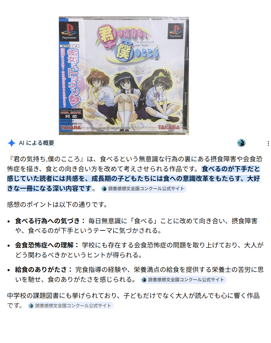 | … | 626/02/16(月)00:40:46No.1402474909+>ギャルゲの感想を作文コンクールに提出するやつ嫌過ぎる… |